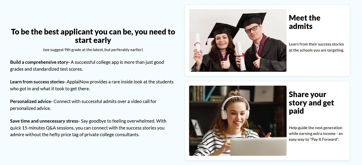 A new platform called ApplaiNow (pronounced “Apply Now”) just launched to fix this. It connects families directly with successful college students for 1:1 advice.